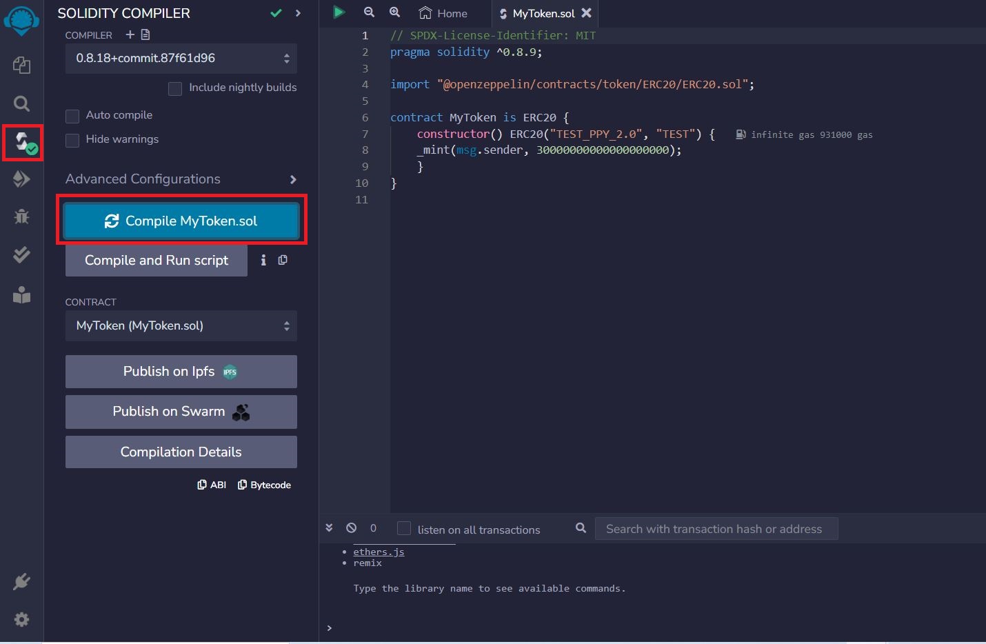 <figure><img src="https://809720161-files.gitbook.io/~/files/v0/b/gitbook-x-prod.appspot.com/o/spaces%2FPPsAwLpyOeItHVo4Fslw%2Fuploads%2FZ7pjfr9DCadcMuR7Z6oS%2Fcompile-tokens.JPG?alt=media&#x26;token=3cff7926-a18d-4daa-a179-7ea7ca68af89" alt=""><figcaption></figcaption></figure>